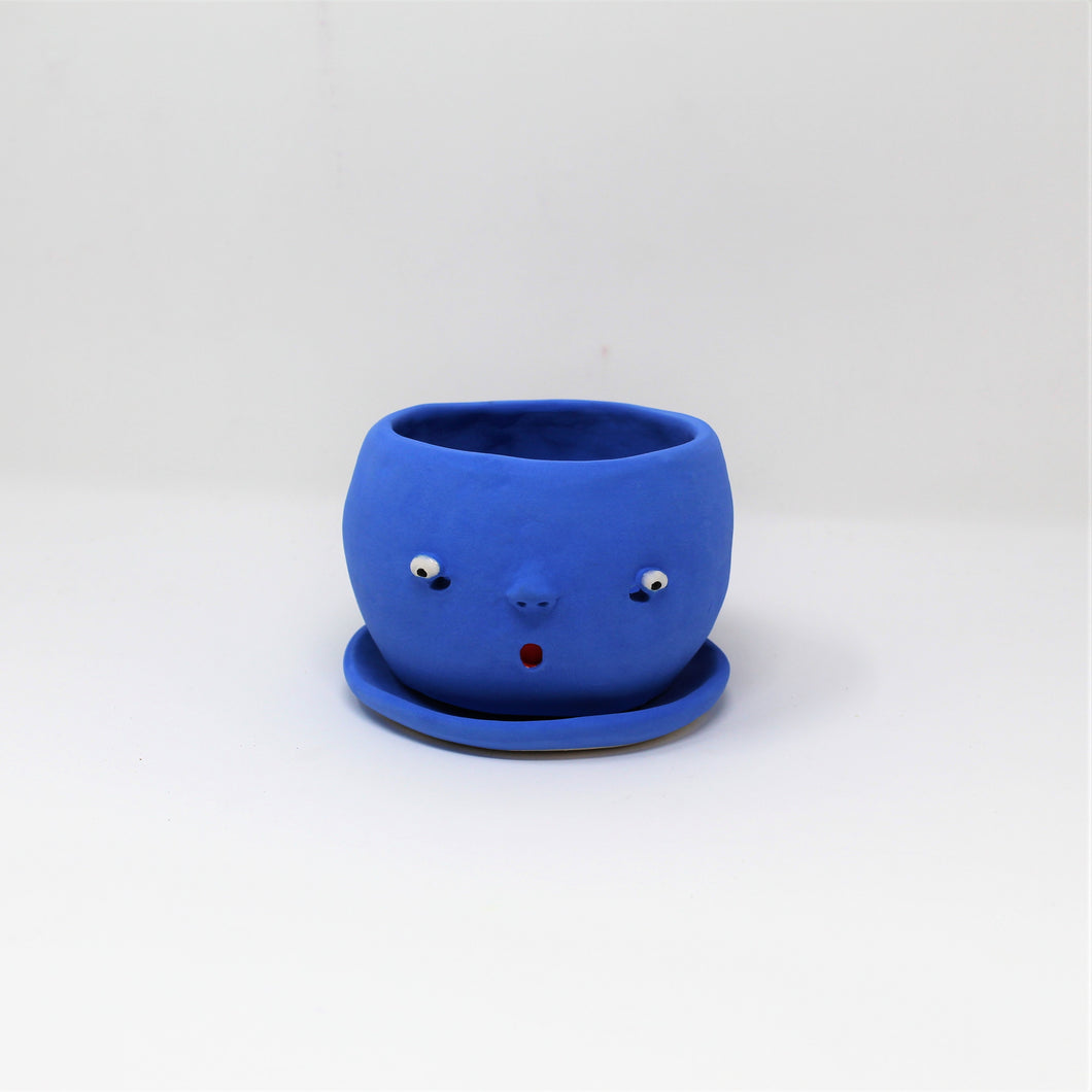 BLUE SAD BOI 4 INCH CRYING PLANTER WITH PLATE #1