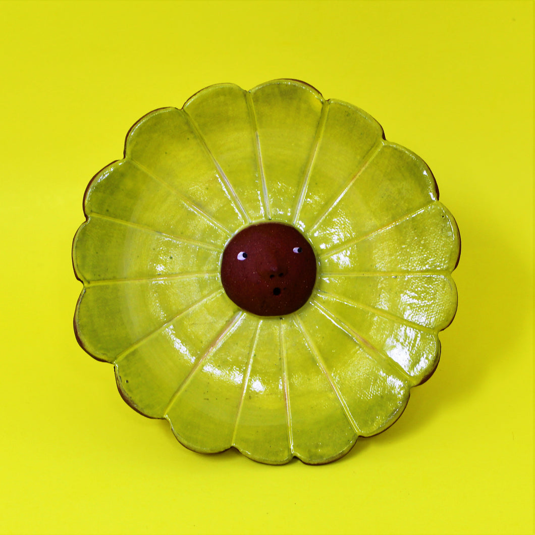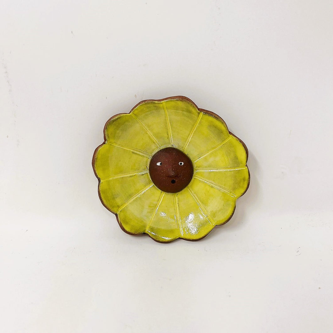 FLOWER FACE INCENSE BURNER/TRINKET DISH YELLOW