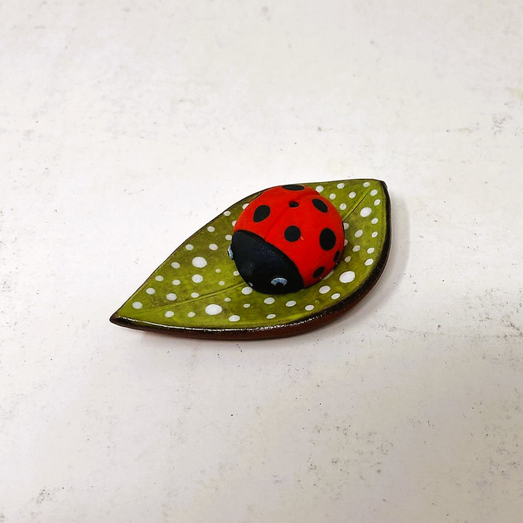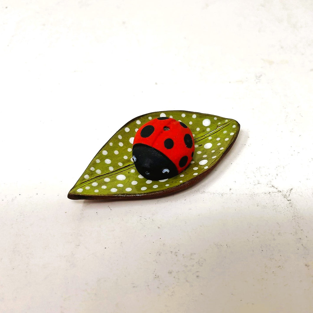 LADYBUG INCENSE SCULPTURE AND SMALL LEAF PLATE SET #4 (shipping included in price)