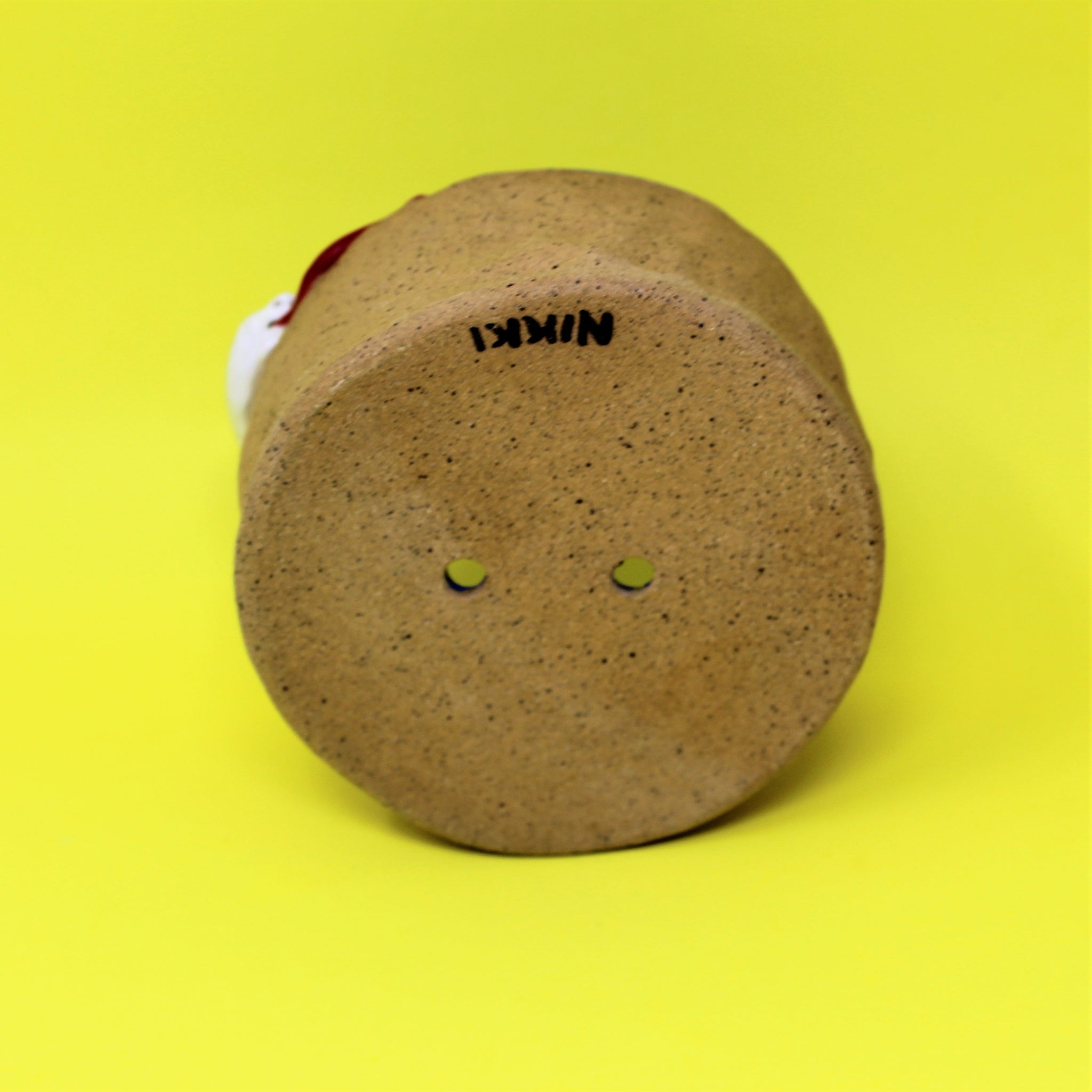 Every pot is hand painted with lead free food safe glazes in a mid-range electric kiln.
