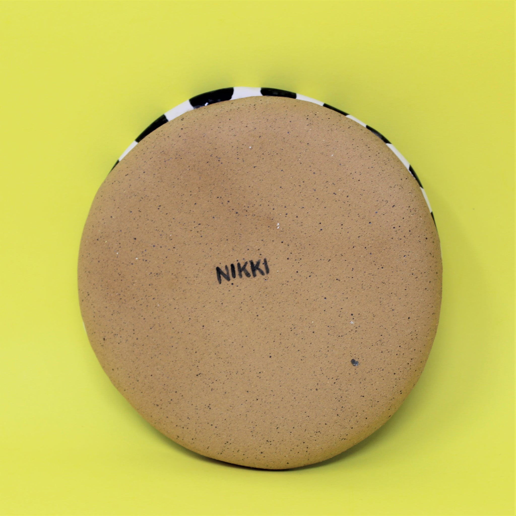 Hand built plate made from speckled buff clay.