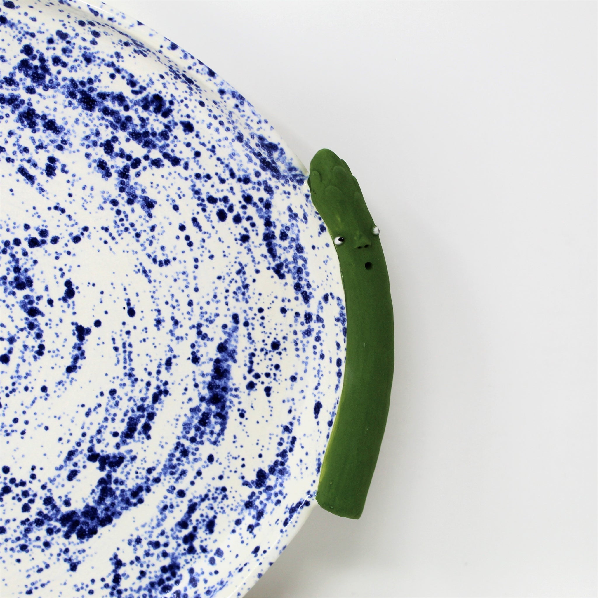 Asparagus Platter, Ceramic/Glaze/Underglaze,14.5 x 10.5 x 1 inches