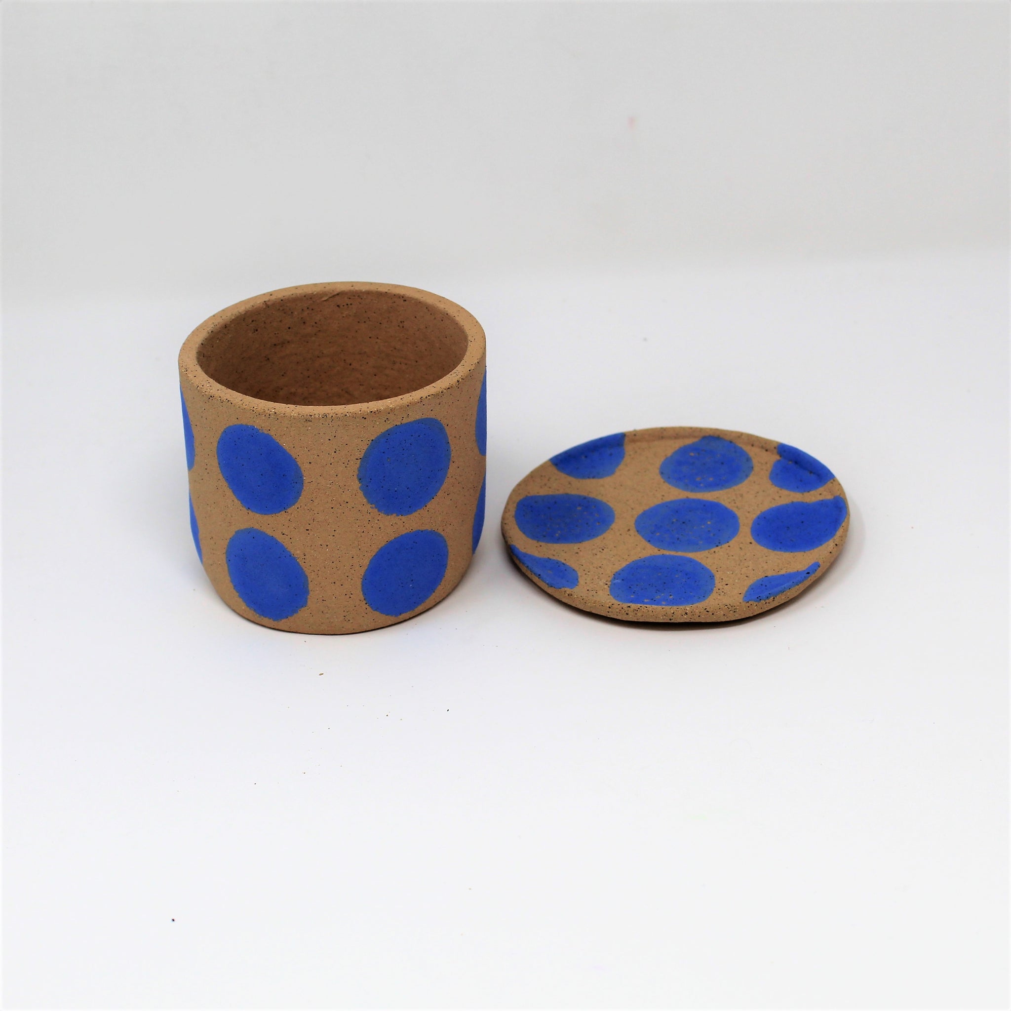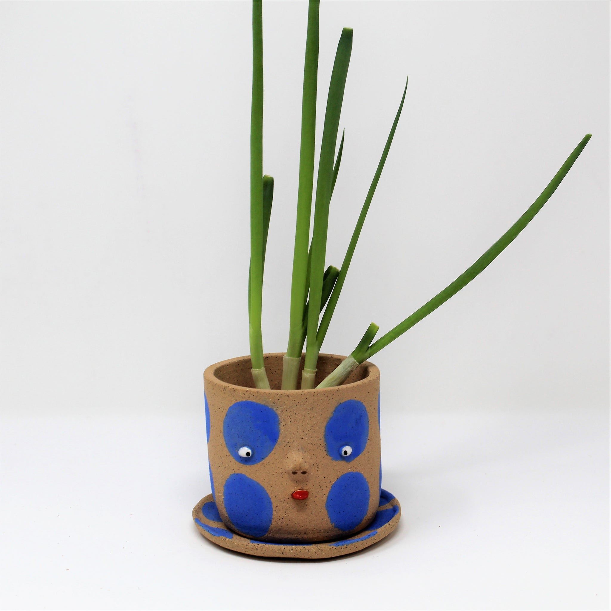 BLUE SPOTTY PLANTER WITH PLATE #1