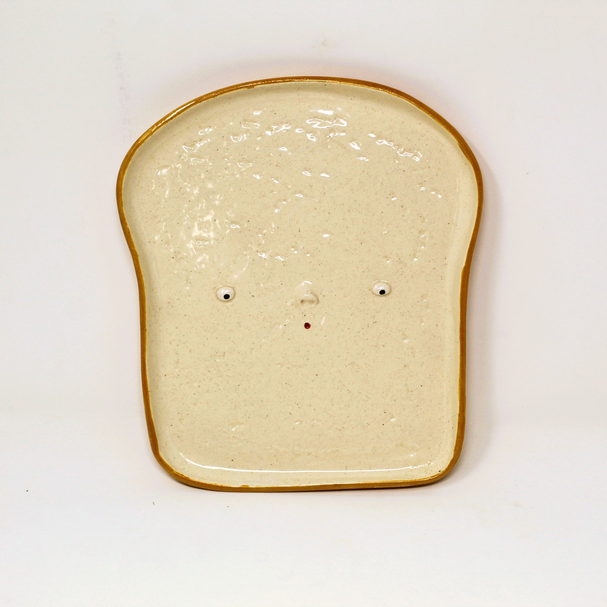 Happy Bread Plate, Ceramic/Glaze/Underglaze, 7 x 8 x 0.5 inches