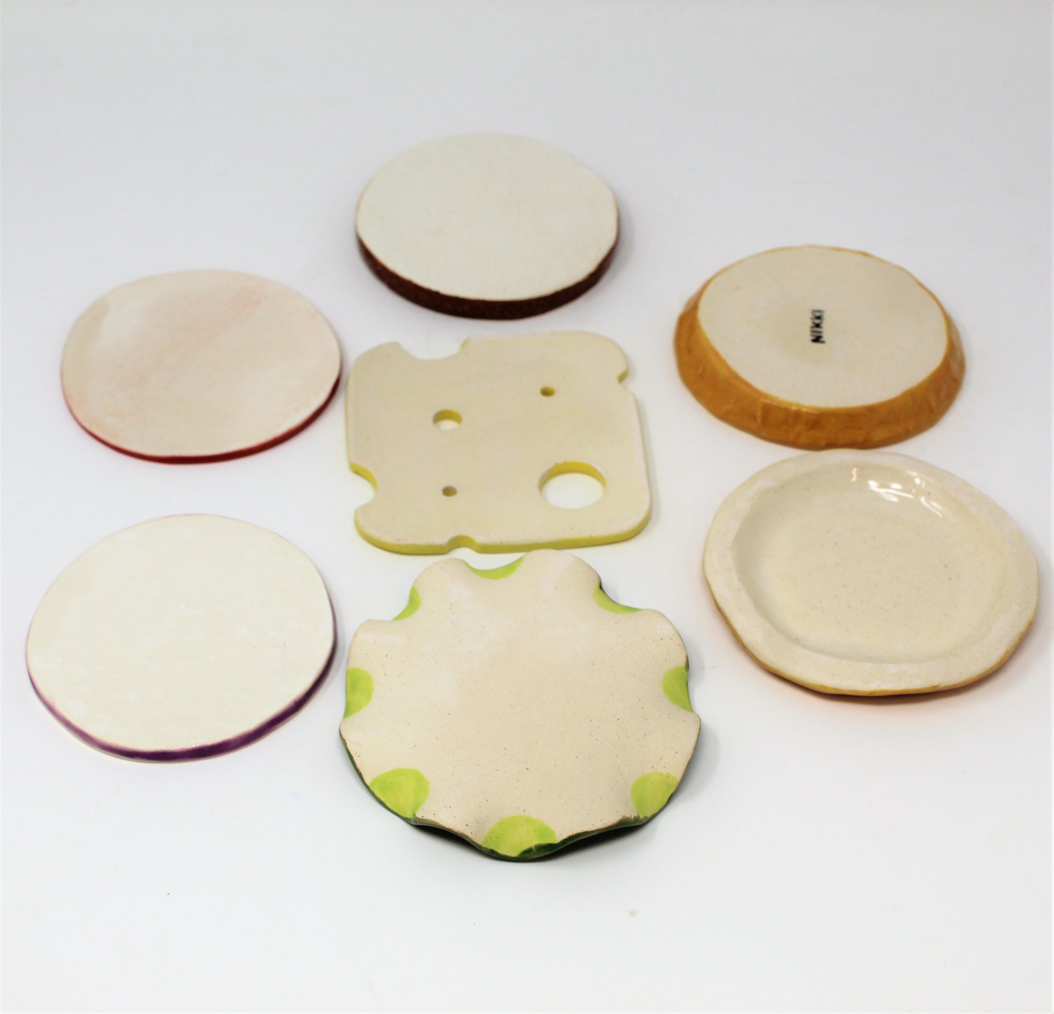 Hand built coasters made from stoneware clay.
