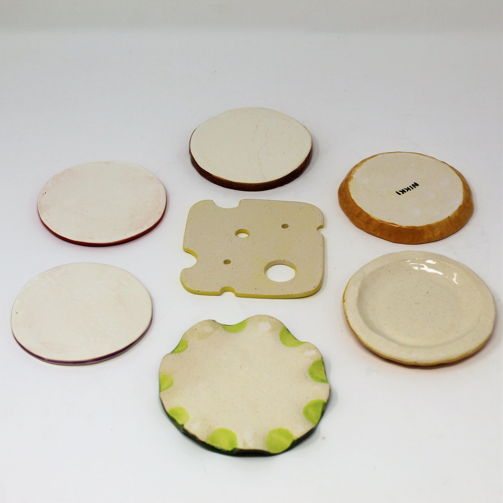 Hand built coasters made from stoneware clay.