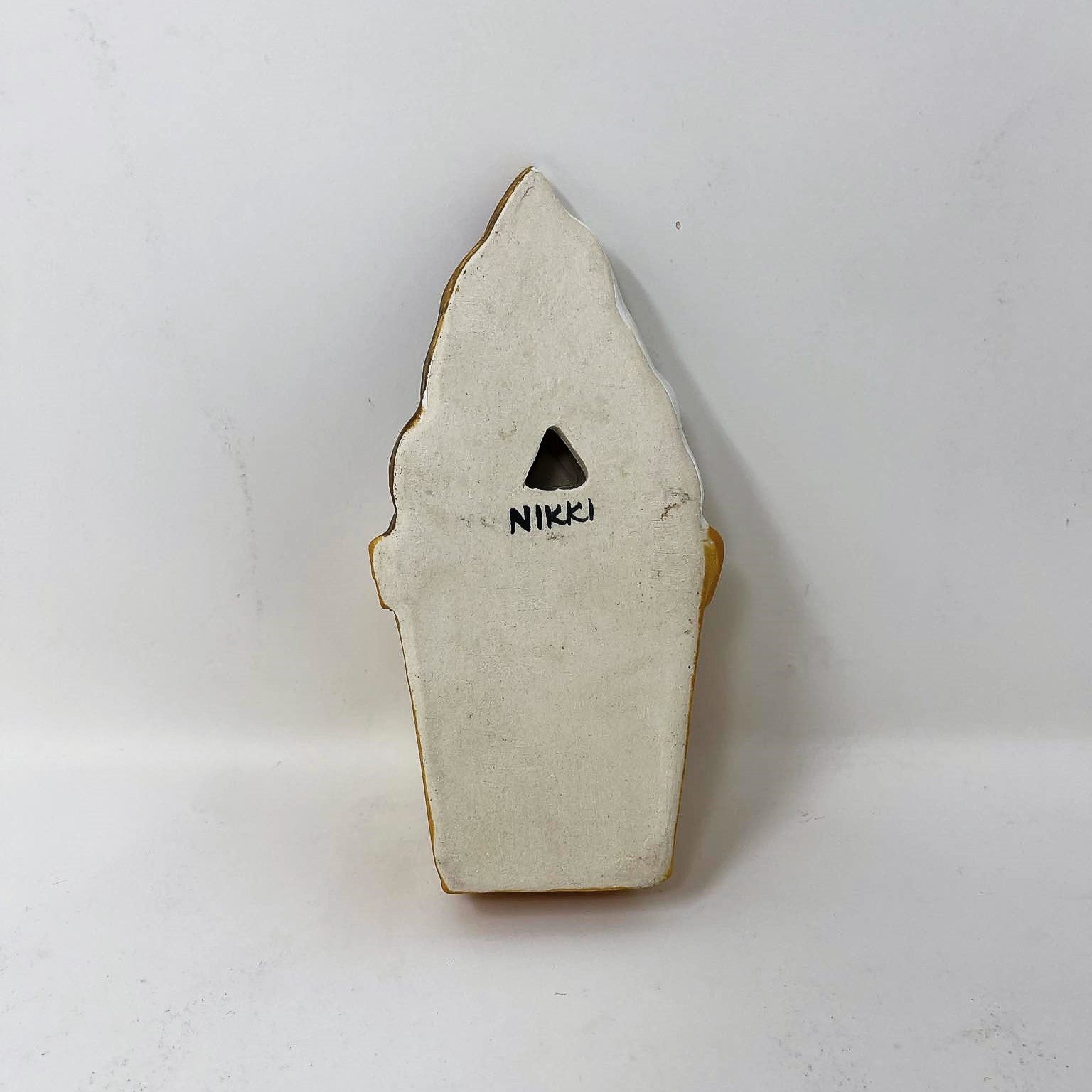 Every pot is hand painted with lead free food safe glazes in a mid-range electric kiln.