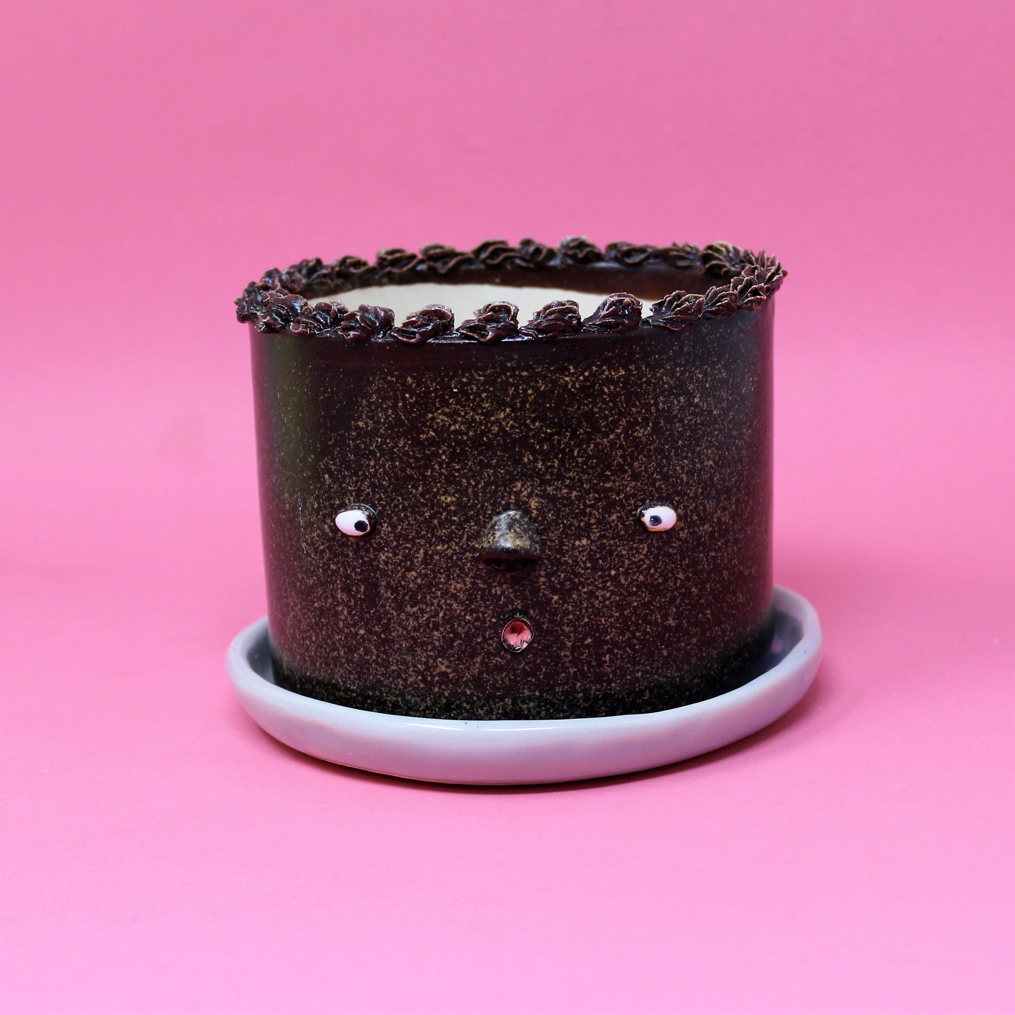 CHOCOLATE CAKE PLANTER WITH LAVENDAR PLATE #1