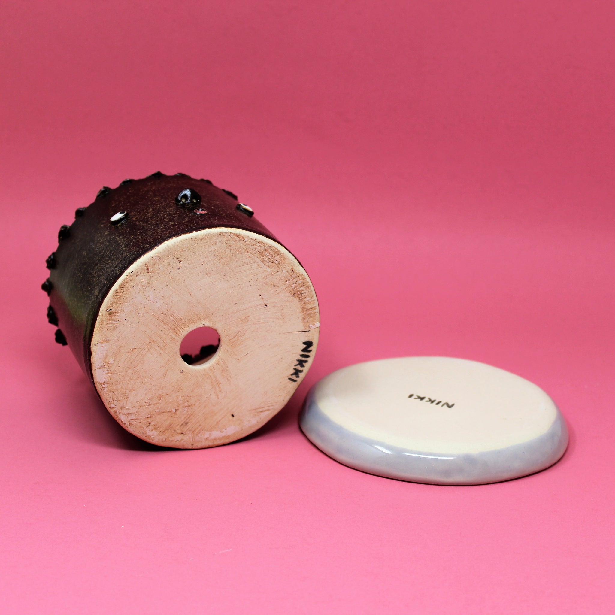 Every pot is hand painted with lead free food safe glazes in a mid-range electric kiln.