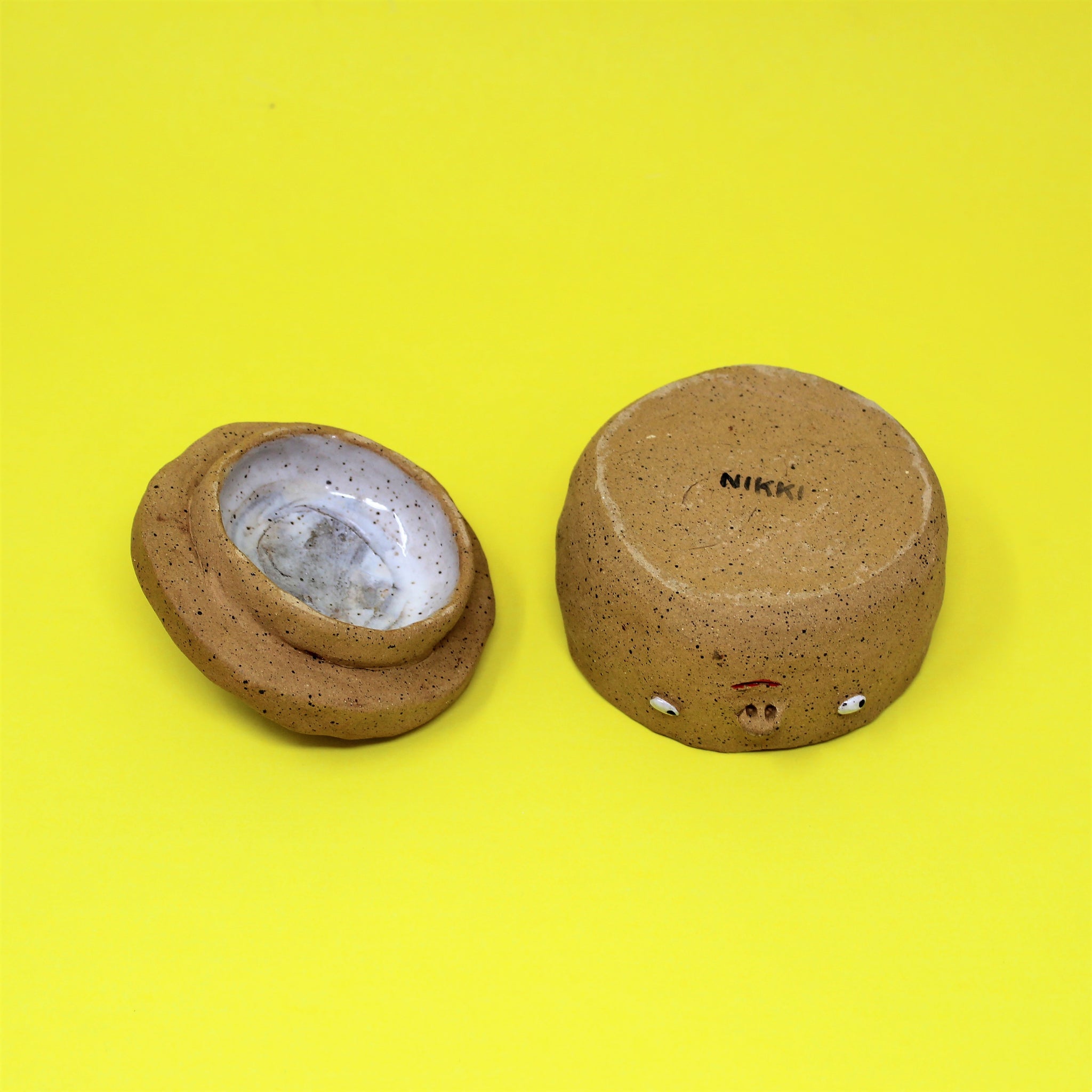Hand built jar made of stoneware and clay