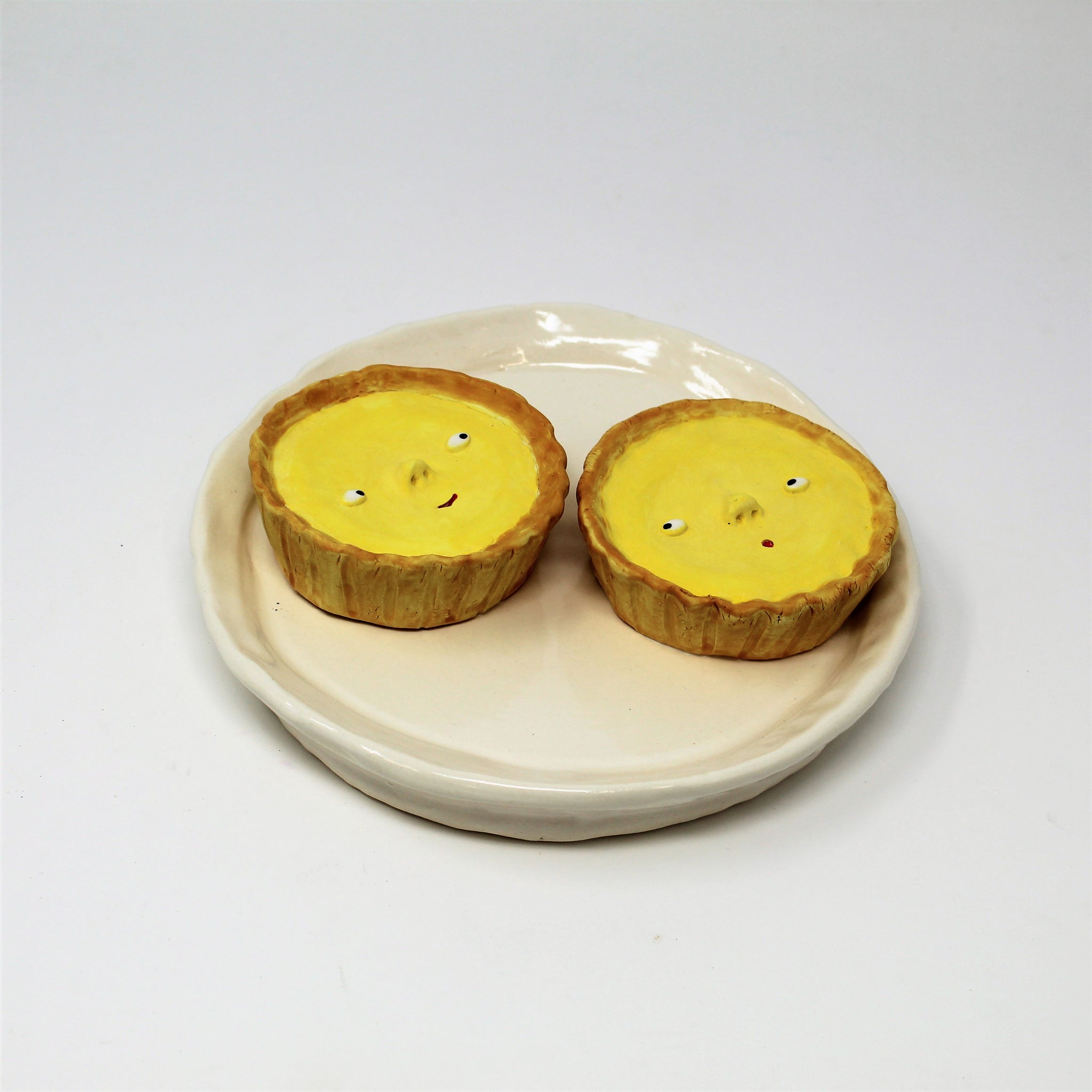 Dan Tat (Egg Custard Tart) Plate, Ceramic/Glaze/Underglaze, 7 x 7 x 1.5 inches