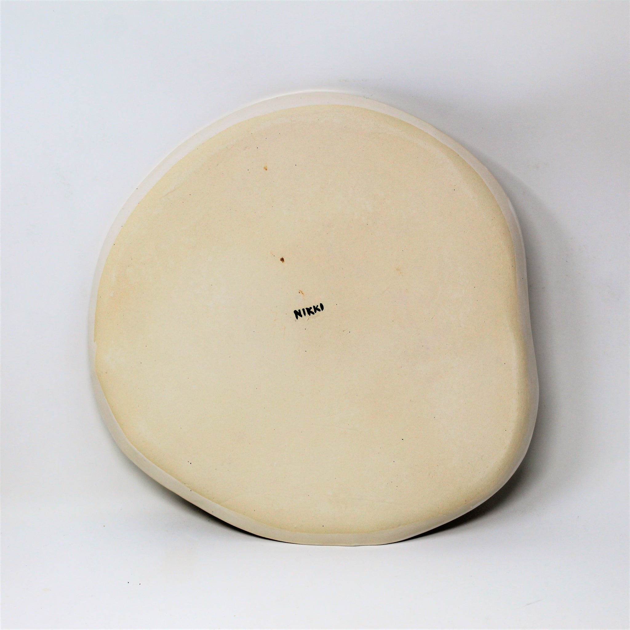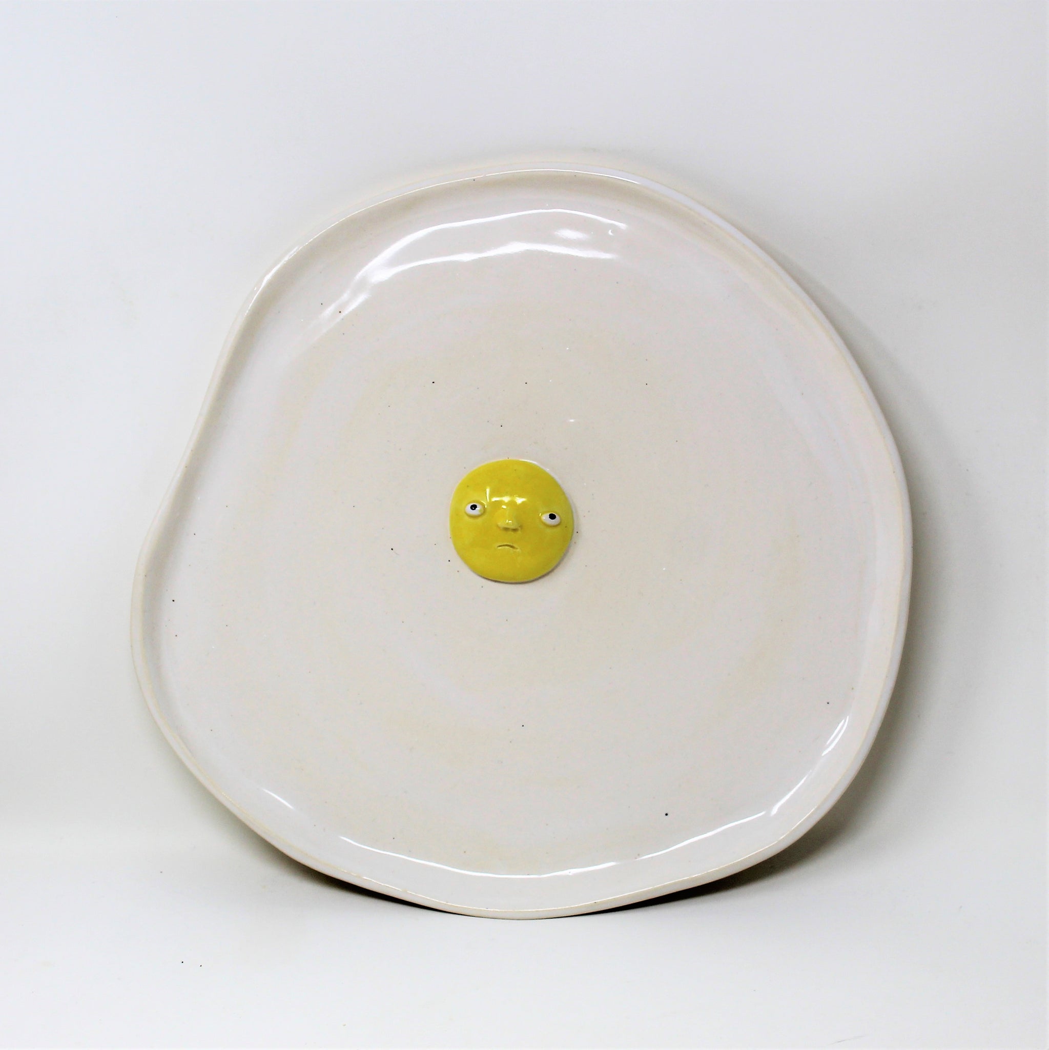 Hand built egg plate made from creamy porcelain like clay.