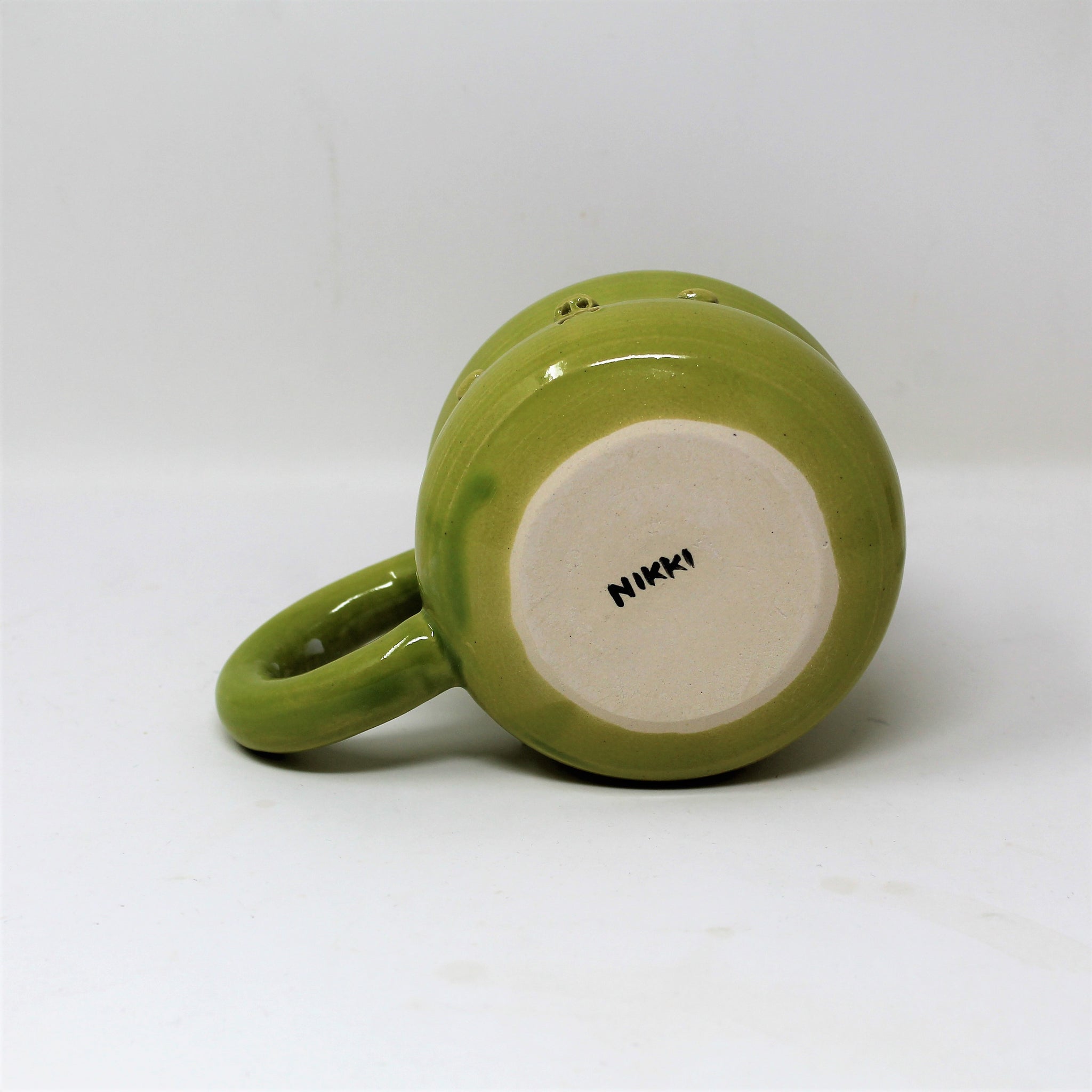 Every pot is hand painted with lead free food safe glazes in a mid-range electric kiln.