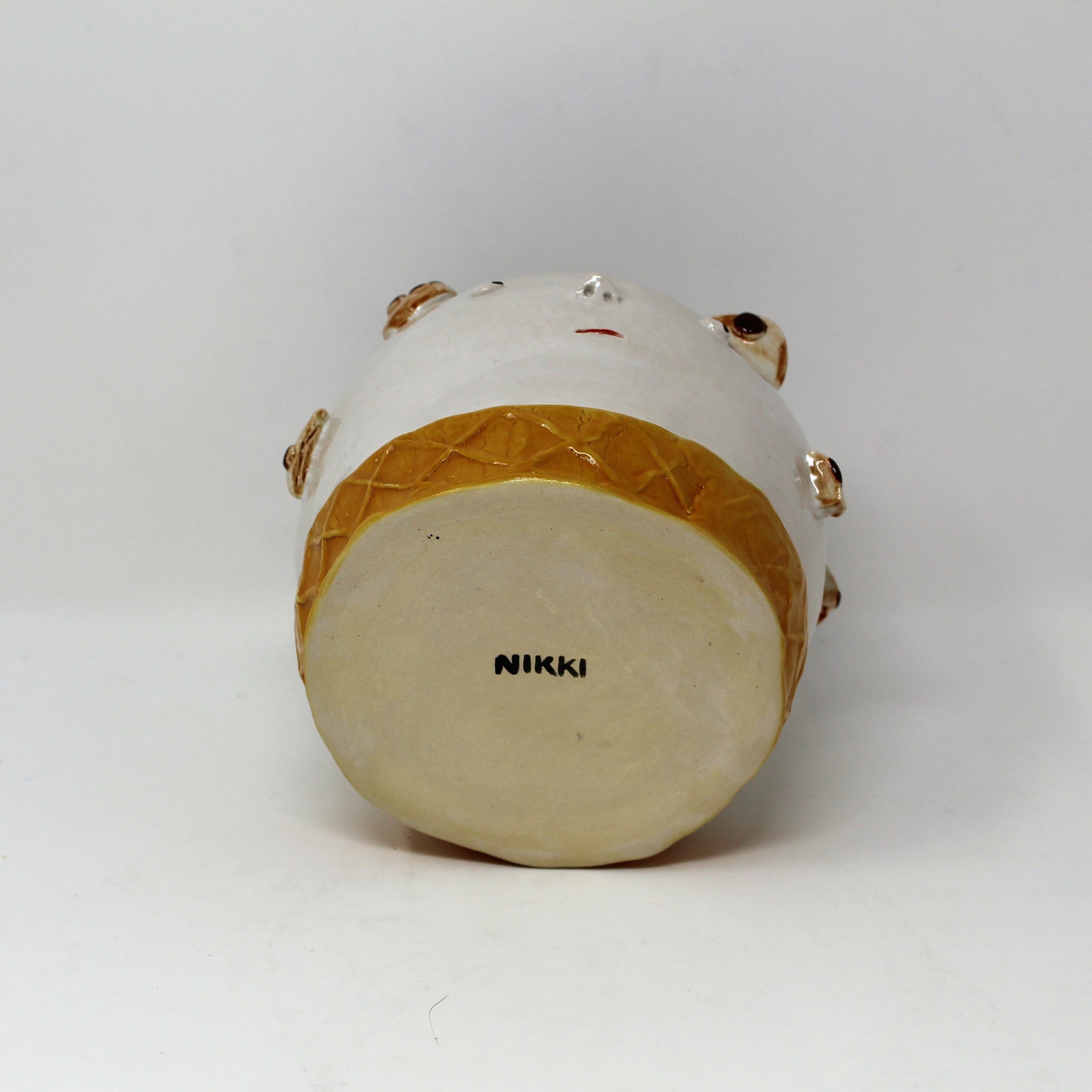 Every pot is hand painted with lead free food safe glazes in a mid-range Cone 6 electric kiln.