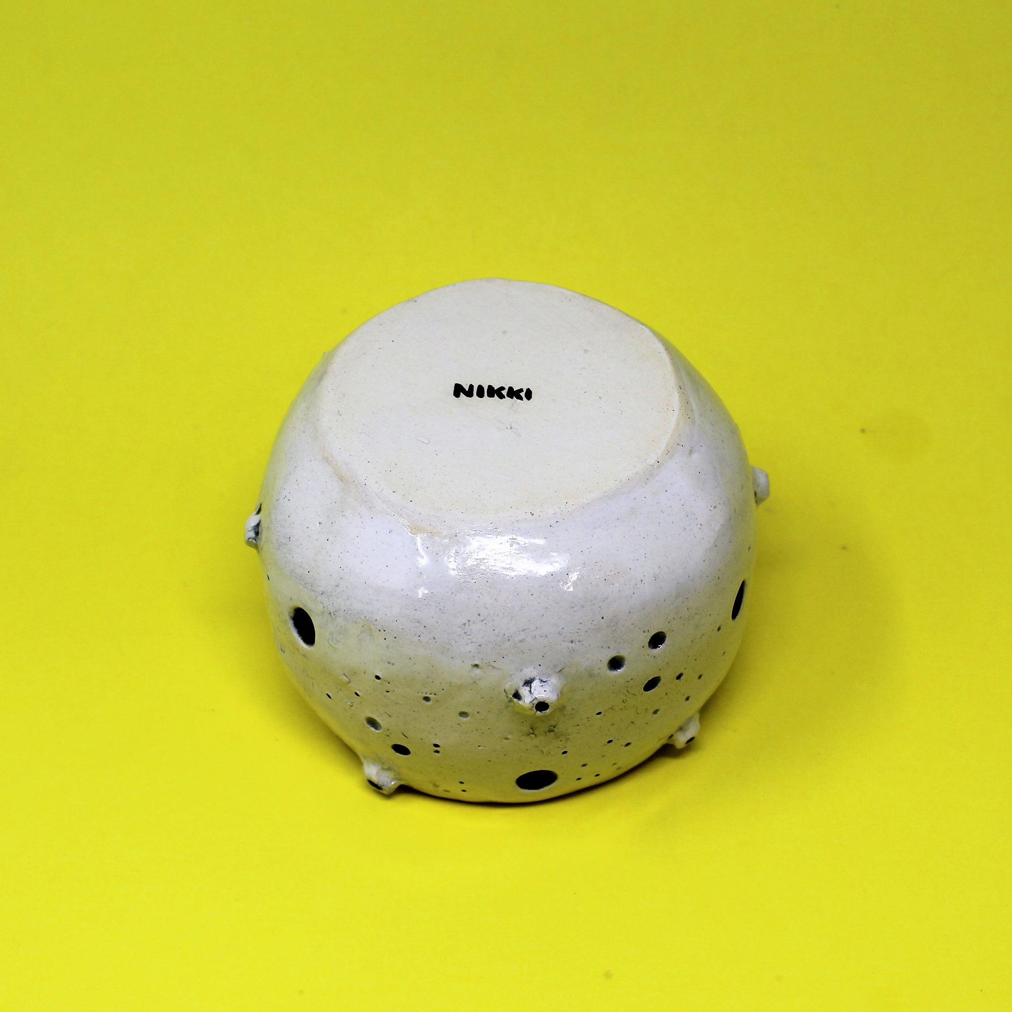 Every pot is hand painted with lead free food safe glazes in a mid-range electric kiln.