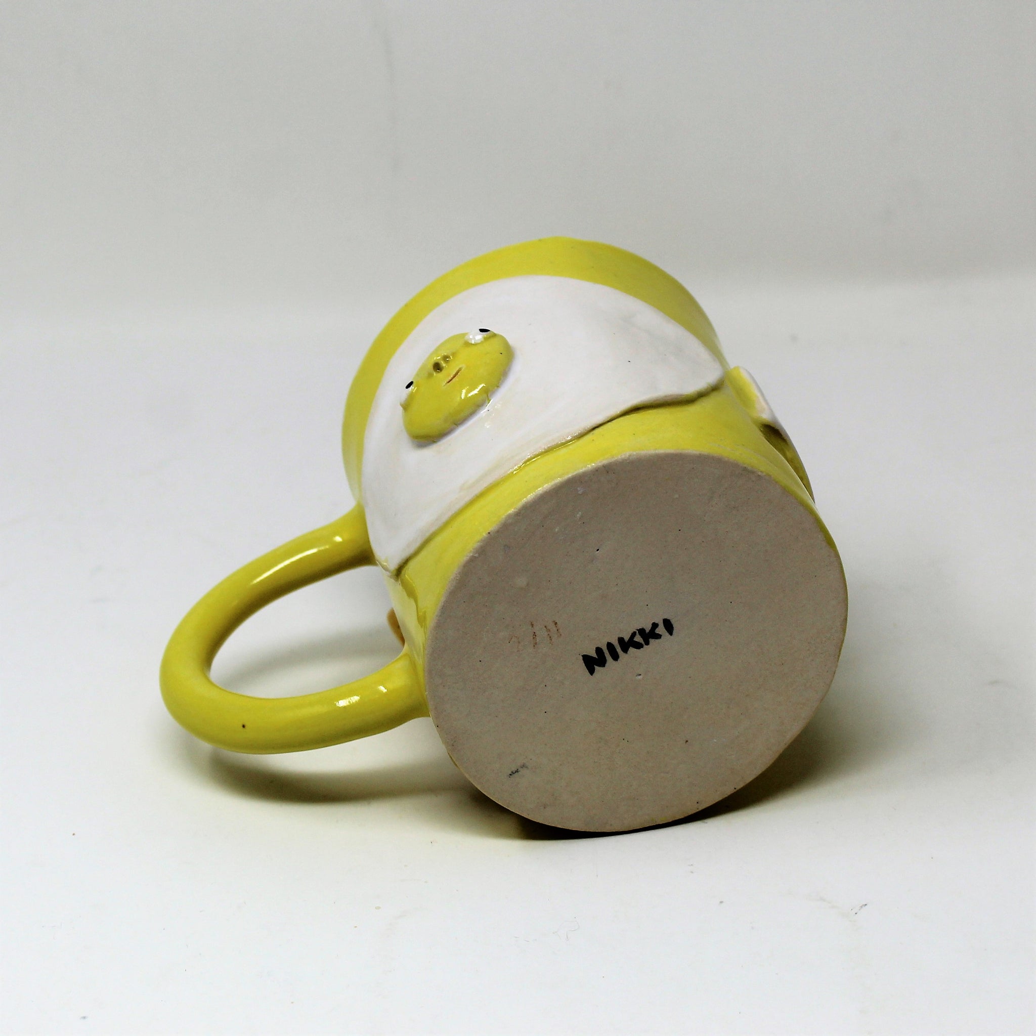 Every pot is hand painted with lead free food safe glazes in a mid-range electric kiln.